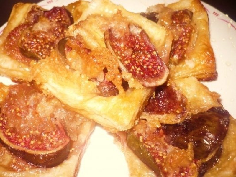 Se taie romburi de aluat fraged. Se pune deasupra cu lingurita amestecul de ghimbir.Apoi cate o felie subtire de smochina.Se picura miere. Se da la cuptor sa se rumeneasca.