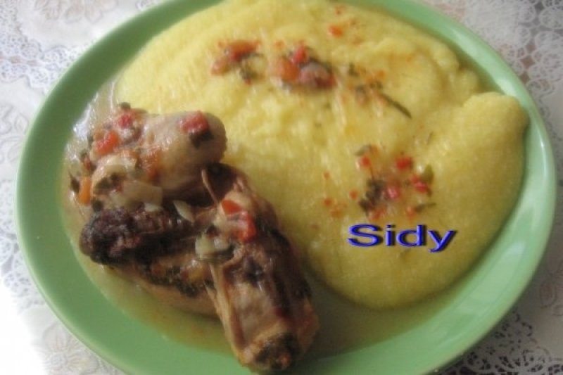 Ceapa taiata marunt se pune la calit impreuna cu rosiile taiate cubulete, se adauga apoi carnea si se potriveste gustul de sare si piper. Se adauga patrunjel verde tocat si o cana cu apa, apoi se lasa sa fiarba carnea bine. Se face mamaliguta: la 1 l apa se pun 300 g malai si se lasa sa fiarba, invirtindu-se sa nu se prinda mamaliga de vas.