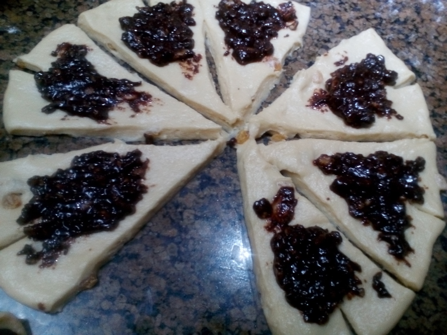 Cornuri pufoase si inimioare cu nuca si ciocolata.