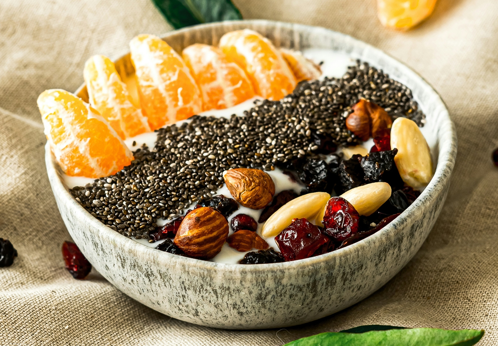 Mic dejun rapid si sanatos cu iaurt grecesc, seminte de chia si fructe proaspete. O reteta gustoasa, plina de nutrienti, gata in doar 5 minute.