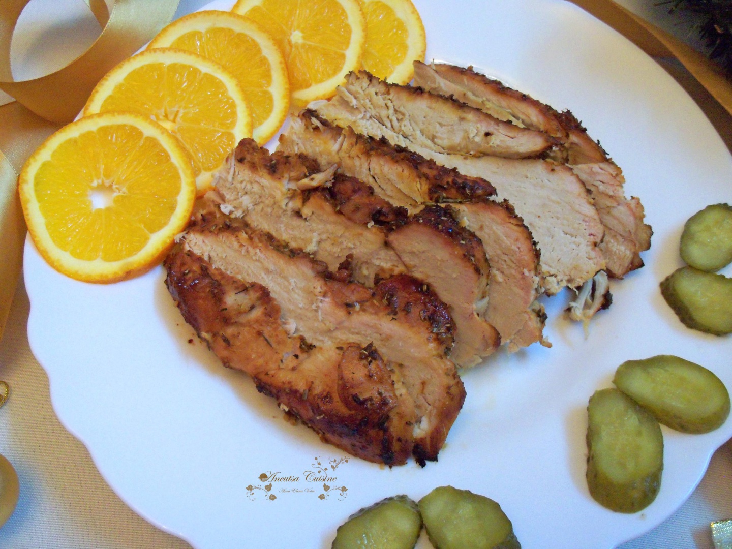Se taie pieptul in doua, se unge cu ulei, se freaca cu sare, dar si mirodenii pentru o crusta frumoasa.