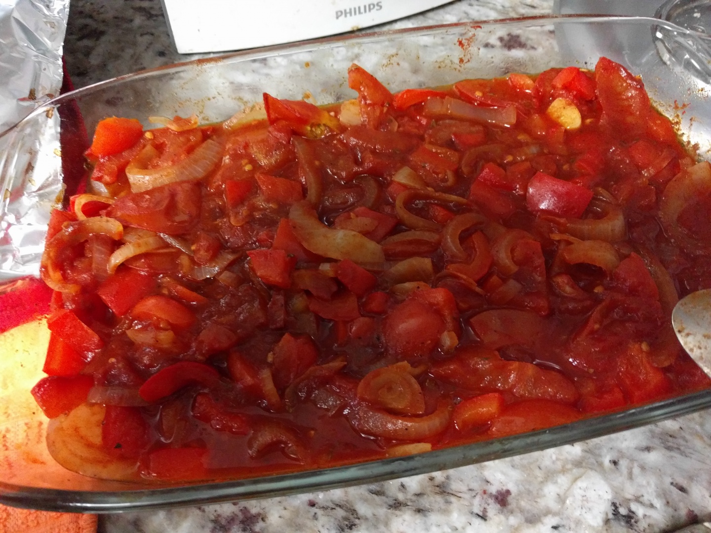 Intr-un vas yena, aranjam straturi de legume, ardeii taiati cuburi sau fasii.