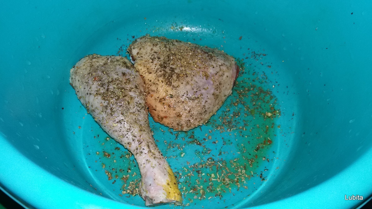 Pulpele trebuie spalate, uscate, condimentate cu sare, piper si toate ierburile aromate.