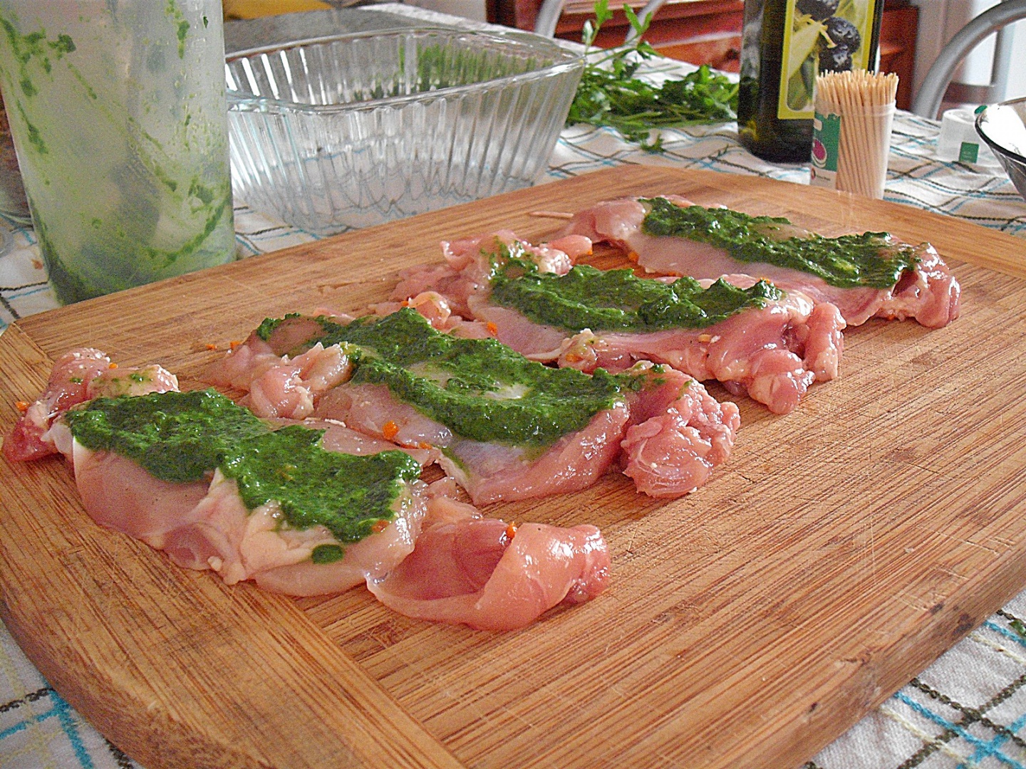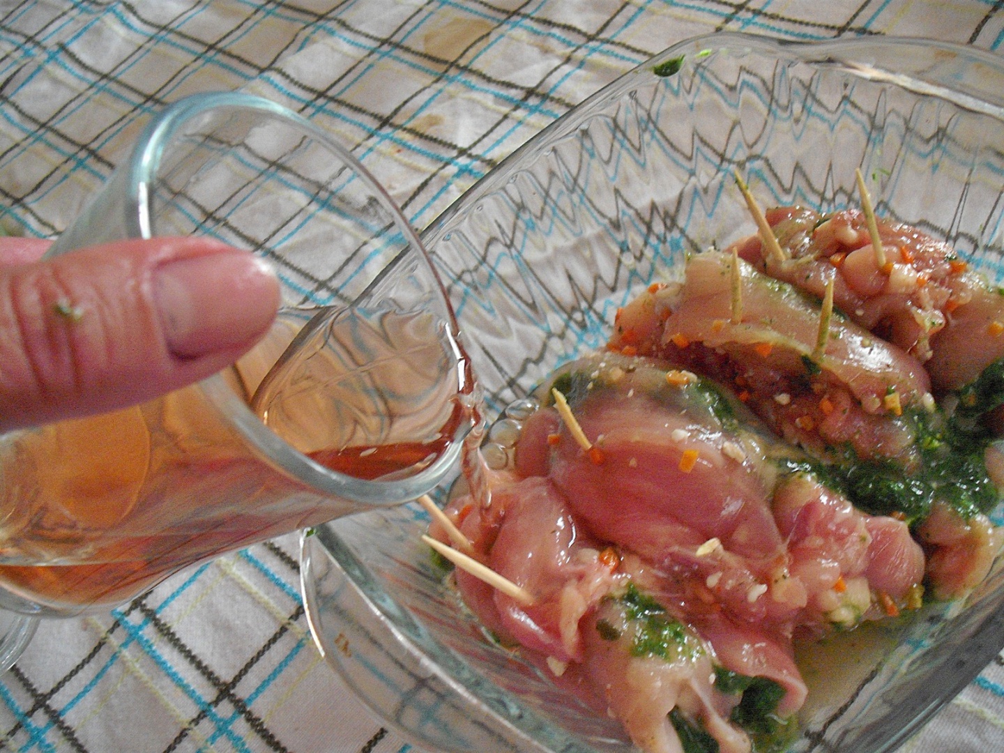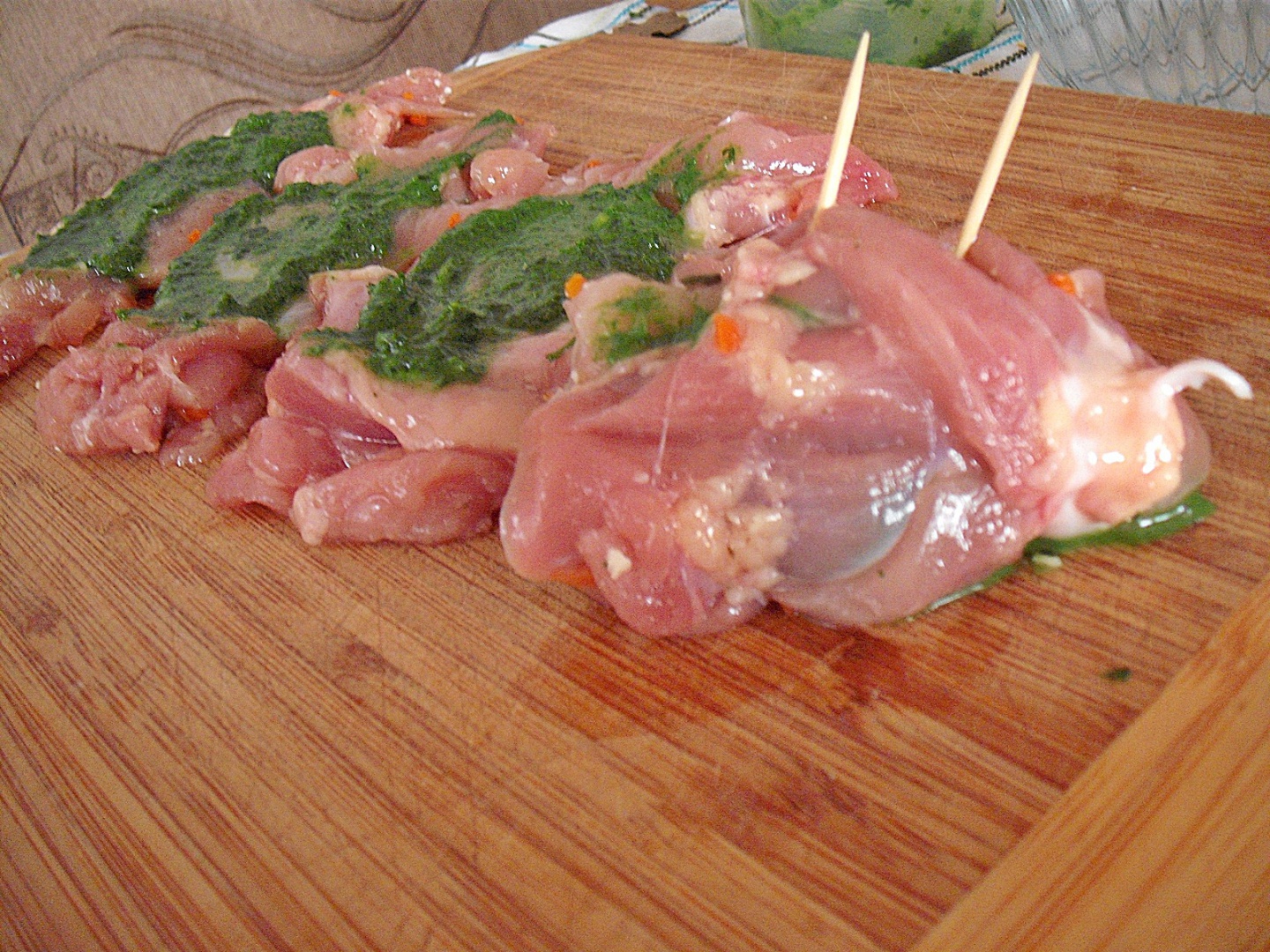 Pulpele de pui, spalate si zvantate, se subtiaza uniform.
