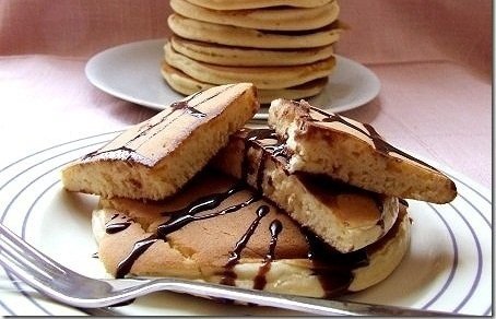 In centrul tigaii incinse adugam cu ajutorul uni polonic aluatul . Dupa ce l-am turnat intigaie nu ii atingem in nici un caz suprafata. El se va intinde de unul singur atat cat va fi nevoie(maxim 10 cm diametru). In momentul in care apar primele bulbucute iar suprafata isi pierde luciul,intoarcem pancakesul.Le prajim in felul acesta pe toate.