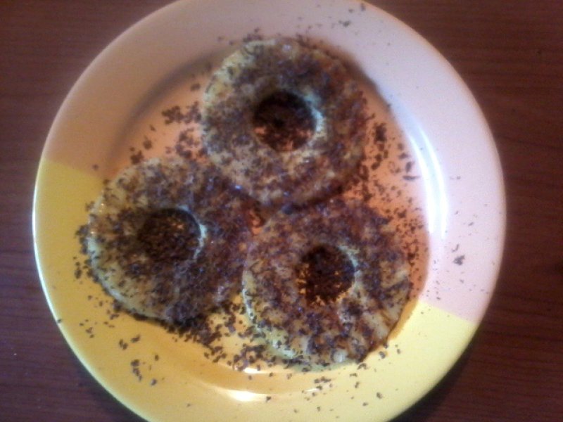 Se imbraca rondelele de ananas in miere si se presara cu putin praf de scortisoara pe ambele parti.