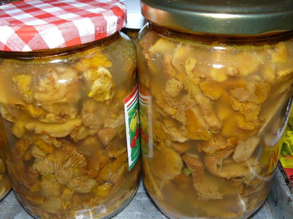 Acum am făcut cu gălbiori, că asta am avut. Am mai aruncat din apa lăsată, după ce i-am pus o oră în cuptor să fiarbă. Am adăugat oţetul peste apa din ciuperci si apoi am fiert pe aragaz, neacoperit. Am dat căteva clocote cu oţetul, apoi am pus o cana de ulei si am clocotit bine iar. potriviţi sarea dupa gust. Am pus dafin, boabe de piper, la urmă şi vreo 3 fire de frunze de ţelină si o ramură de cimbru(le-am scos apoi). Mi-a ramas vreun litru de suc după ce am pus în borcane!.