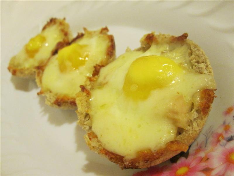 Cu ajutorul unei forme rotunde decupam cercuri din miezul feliilor de paine(eu am folosit un pahar).Ungem cu putin ulei o tava pentru briose.Cu ajutorul unui sucitor intindem putin rondelele de paine, apoi le asezam in tava pentru briose.Introducem tava in cuptorul incins pentru 3-4 minute,painea capata o crusta.