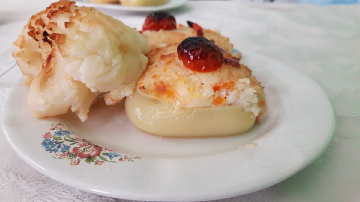 Ardeii așezati într-o tavă se umplu cu conopida, apoi se bagă în cuptorul preîncălzit la 200 grade C, timp de 40-45 minute până se rumenesc.