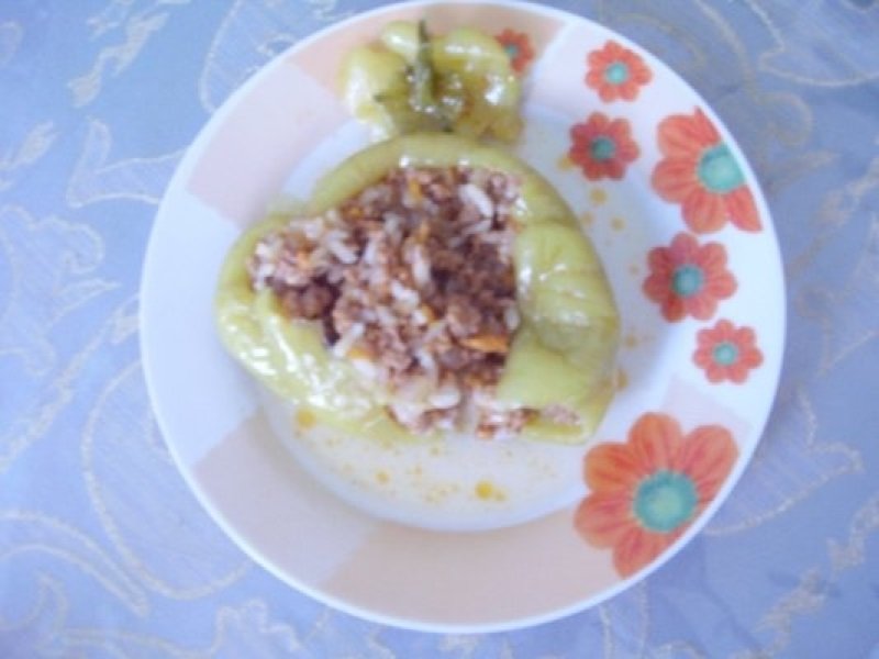 Mai intai tocam ceapa, dam prin razatoarea mica morcovii.Intr-o cratita punem putin ulei si undim ceapa cu morcovul,adaugam bulionul si condimentele.Orezul se spala si el si se adauga peste celelalte ingrediente.Se ia de pe foc se adauga carnea tocata si se lasa la racit.Cantitatile de carne tocata si orez punem mai mult sau mai putin,in functie de cati ardei vrem sa umplem.