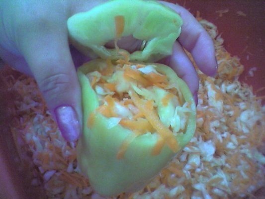 Ardeii ii umpli cu amestecul de varza cu morcov si ii asesi intr-un borcan. Torni lichidul fierbinte peste ei, acoperi la gura si lasi in camara.
