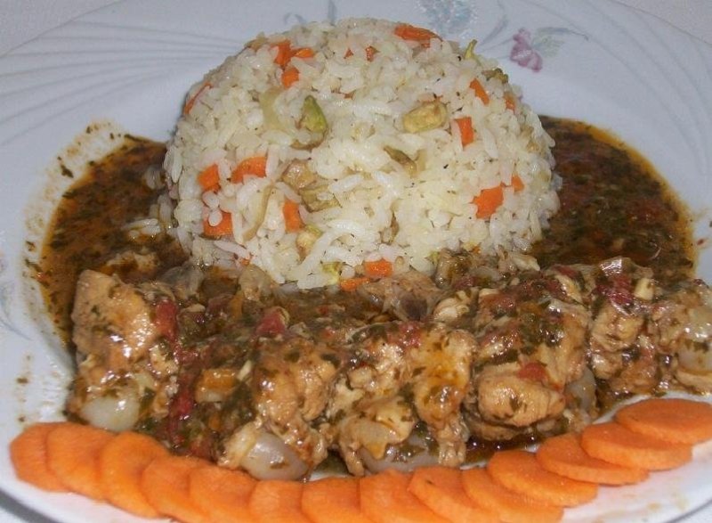 Dupa aceea se pun rosiile,pasta de rosii,coriandrul(taiat marunt),ardeii iuti;se amesteca bine si cind clocoteste se lasa pe foc,mic(acoperit),inca vreo 20 minute;sa se faca rosiile si aripile;cind sint fierte,se pune apa(fierbinte),cit sa cuprinda mincarea.Daca,mincarea,vi se pare f.zemoasa,puneti cca 2 lingurite de amidon(dizolvat in apa rece).Poate fi zemos,daca nu se pune suficient coriandru.