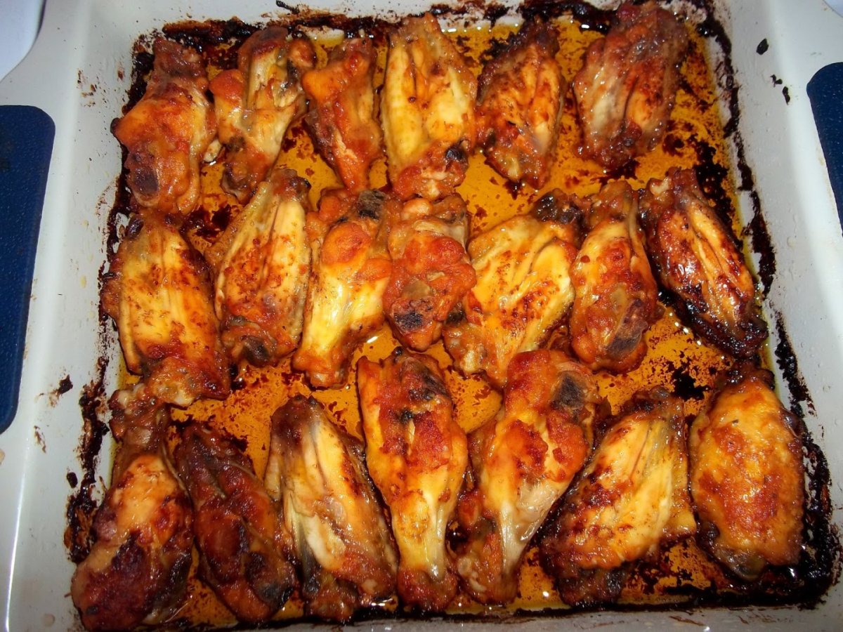 Intr-o tava se toarna ulei si se aseaza aripioarele de pui.Se acopera tava cu folie de aluminiu si se introduce la cuptor timp de 30 minute.Inainte cu 10 minute de a opri focul se descopera tava pentru a se rumeni.