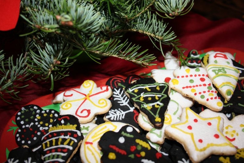 Preparam aluatul din ingredientele mentionate si il intindem in foi.Cu ajutorul formelor taiem diferite figurine pe care le coacem la foc potrivit aproximativ 10-15 min.