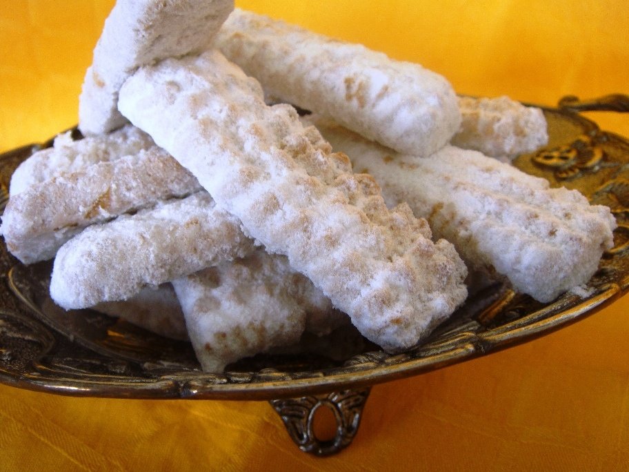 In lipsa dispozitivului pentru biscuiti spritati se pot da alte forme, preferate de voi, biscuitilor. Dupa ce s-au copt, se trec cat sunt inca calzi prin zahar pudra.
