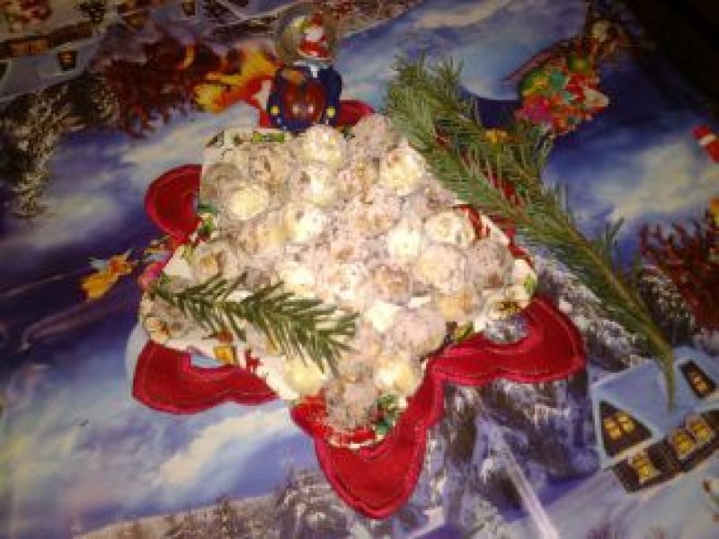 Amestecam untul cu galbenusul, zaharul si zahar vanilat. Adaugam faina si framantam un aluat pe care il dam la rece pentru circa 15 minute, apoi il impartim in bucatele mici de aceeasi marime. In mijlocul fiecarei bucatele punem cate o arahida, le modelam in forma de bilute si le asezam pe o tava tapetata cu hartie de copt. Le dam la cuptorul preincalzit pentru aproximativ 10 minute. Cat sunt calde le tavalim prin zahar pudra, zahar pudra amestecat cu cacao si zahar pudra amestecat cu scortisoara. Le lasam sa se raceasca si servim! Pofta buna!