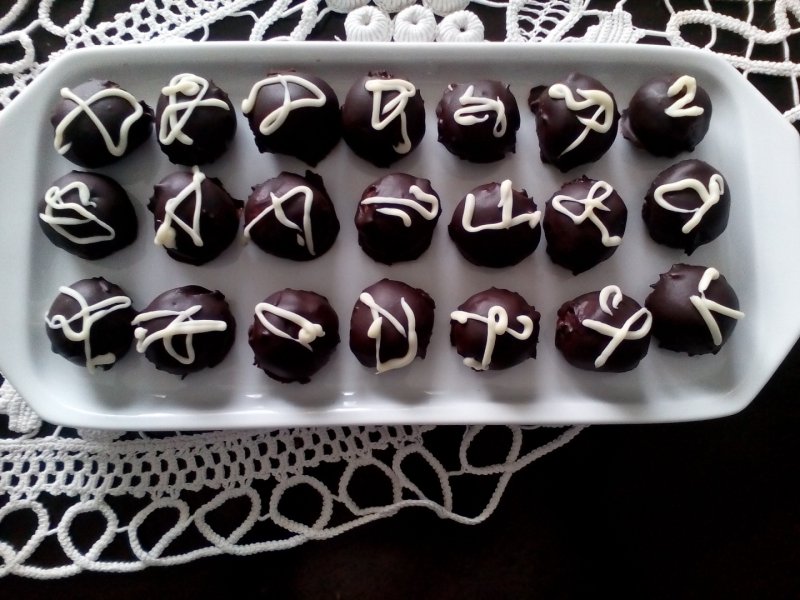 Cutia inchisa de nestle o vom pune intr-o oala cu apa calduta la fiert la foc mic si infasurata intr-un prosop(care ajuta la mentinerea unei temperaturi relativ constante),iar oala o vom inchide cu capacul ei. Aproximativ in doua ore va fi gata, insa daca-l vreti mai dens, puteti sa tineti oala pe foc inca o ora.Eu am deschis dupa 1 ora si jumatate si caramelul meu era perfect.In timp ce se va finaliza caramelul vom pisa intr-o punga biscutii cu ajutorul unui facalet si ii vom amesteca cu bananele presate(urmariti si imaginile postate, eu am folosit o punga mare pentru pisat biscuitii).Dupa ce s-a terminat caramelul vom amesteca bananele, biscutii si vanilia cu caramelul care au fost putin racit.Vom amesteca foarte bine, pana cand se va obtine o compozitie omogena si fina.Din aceasta, vom forma bomboanele, iar dupa ce le-am terminat le vom baga la frigider timp de 20 minute.Intre timp, intr-o cratita de teflon vom topi ciocolata si untul la foc mic, iar la sfarsit vom adauga nutella.Stingem focul, vom lasa sa se raceasca timp de 2 minute, dupa care vom rostogoli bomboanele în ciocolata, apoi le scoatem fie pe un gratar fie pe o tava, lasandu-se sa se intareasca si sa se scurga surplusul de ciocolata.Dupa ce s-au racit si s-a intarit putin ciocolata le vom orna cu ciocolata alba topita sau cu orice doriti.Se vor pune la rece in frigider timp de cateva minute inainte de a se consuma, asta in caz cand temperatura camerei este mai ridicata. Sunt minunate, amestecul dintre caramel si banane au dat compozitiei o aroma deosebita! Cred ca asta e cel mai usor desert pe care l-am facut vreodata, nu mi-a luat timp prea mult si nu sunt nici migaloase, deci va incurajez sa le incercati si voi..!