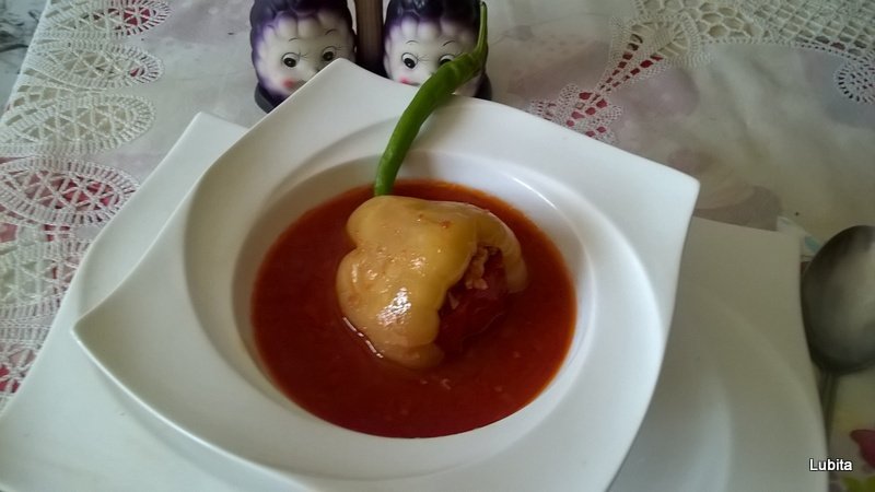 Separat se caleste ceapa si ardeiii taiati marunt, se adauga rosiile pasate cu blenderul, sare; se lasa pe foc pana scade putin, apoi se rastoarna in oala cu ardei; daca nu sunt acoperiti cu lichid, se mai adauga apa, apoi se lasa la foc mic 1h.