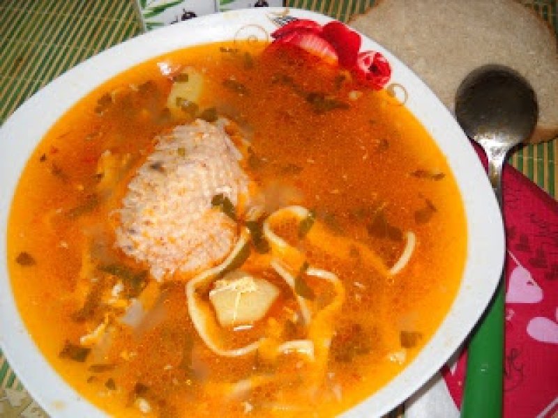 Pentru taitei, se amesteca oul batut cu un praf de sare si faina cat sa rezulte un aluat putin mai tare, se pune aluatul in masina pentru paste, iar cand s-a intins suficient, se taie la dimensiunea dorita.