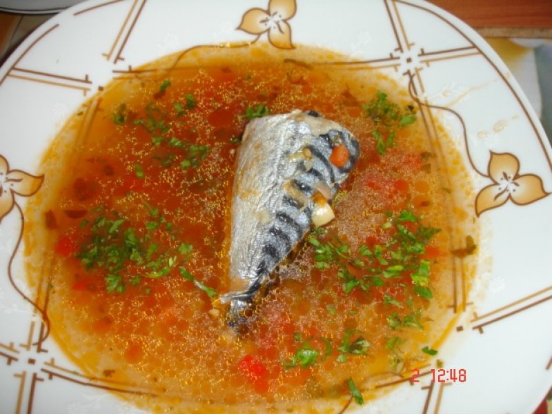 Mai lasam sa dea cateva clocote si oprim focul.Adaugam cu grija pestele in bors.