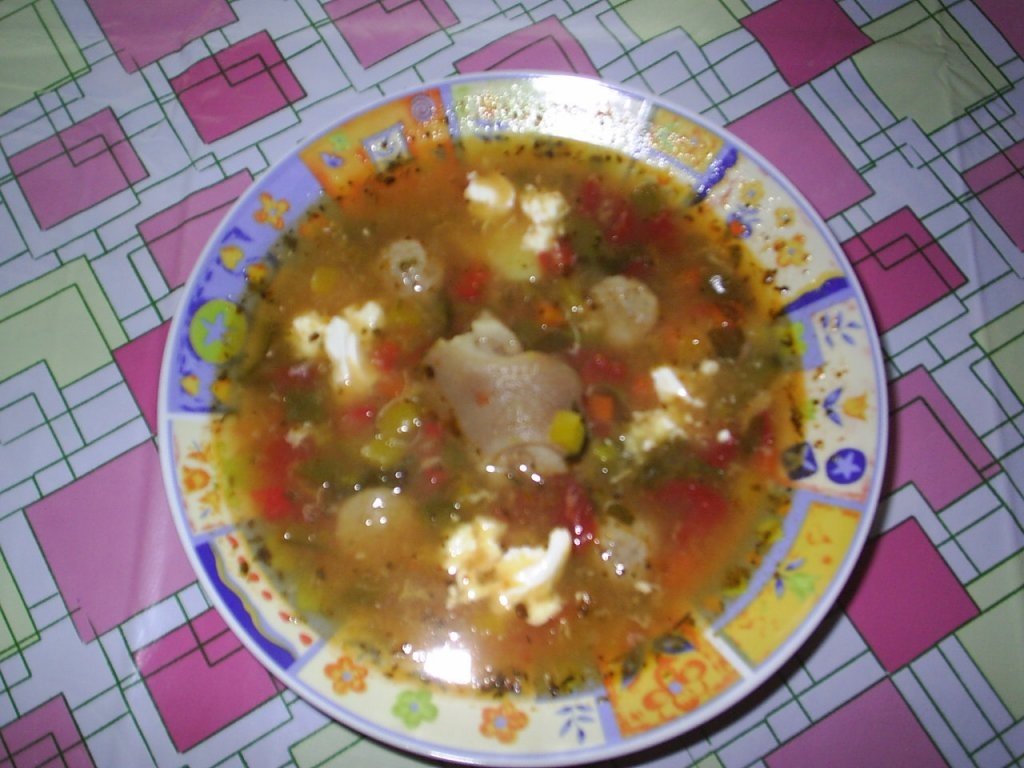Punem cozile de porc taiate la fiert cu o lingurita de sare,intre timp pregatim zarzavatul taiat marunt,cartofii in cubulete,iar carnea tocata o amestecam cu sare si piper negru si un pic de ulei si facem bilute.Cind carnea a inceput sa fiarba (nu uitati sa spumuiti dar sa nu luati toata grasimea,ramine borsul fara stele)adaugati ceapa si apoi zarzavatul iar mai la urma cartofii.Cind cartofii sun gata adaugati rosiile si sucul de la ele dati un clocot si apoi puneti bilutele de carne tocata.Adaugati borsul dupa ce a dat un clocot adaugati oul si zdrentuitil,apoi patrunlelul si cimbrul,puneti capacul si dati de pe foc.