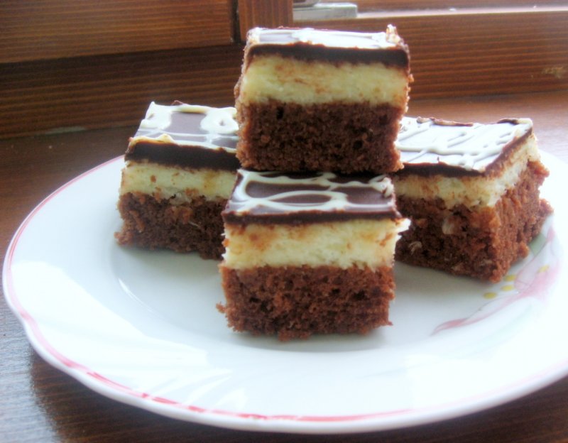 Se freaca untul cu zaharul pana devine cremos si zaharul s-a topit. Se adauga ouale, unul cate unul, amestecand bine dupa fiecare. Punem laptele si faina amestecata in prealabil cu cacao si praful de copt. Se incorporeaza toate foarte bine in crema de unt. Compozitia o turnam intr-o tava tapetata cu hartie (33x23) si o punem in cuptorul incins. Se coace cam 20 minute la 180 de grade (pentru a verifica faceti testul scobitorii).