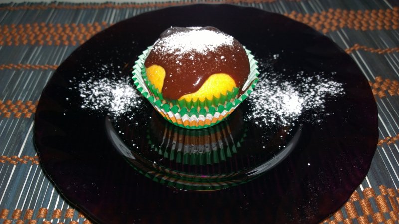 Între timp am făcut și un sos acrișor cu care am ornat brioșele. Am pus untul l-a topit la foc mic, apoi am adaugat ciocolata și sucul de lămâie și am lăsat 2-3 minute să se omogenizeze.