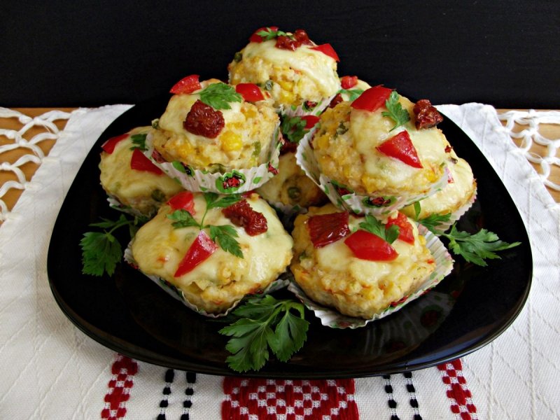 Ungem formele de briose cu putin ulei de masline si le umplem cu amestecul rezultat.