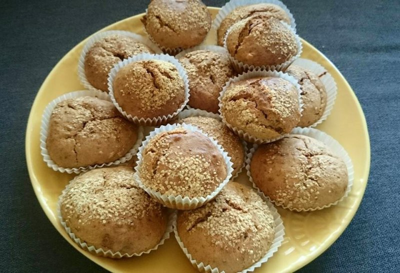 Amestecul se pune in forme din hartie pentru briose iar pe deasupra se presara germeni de grau.