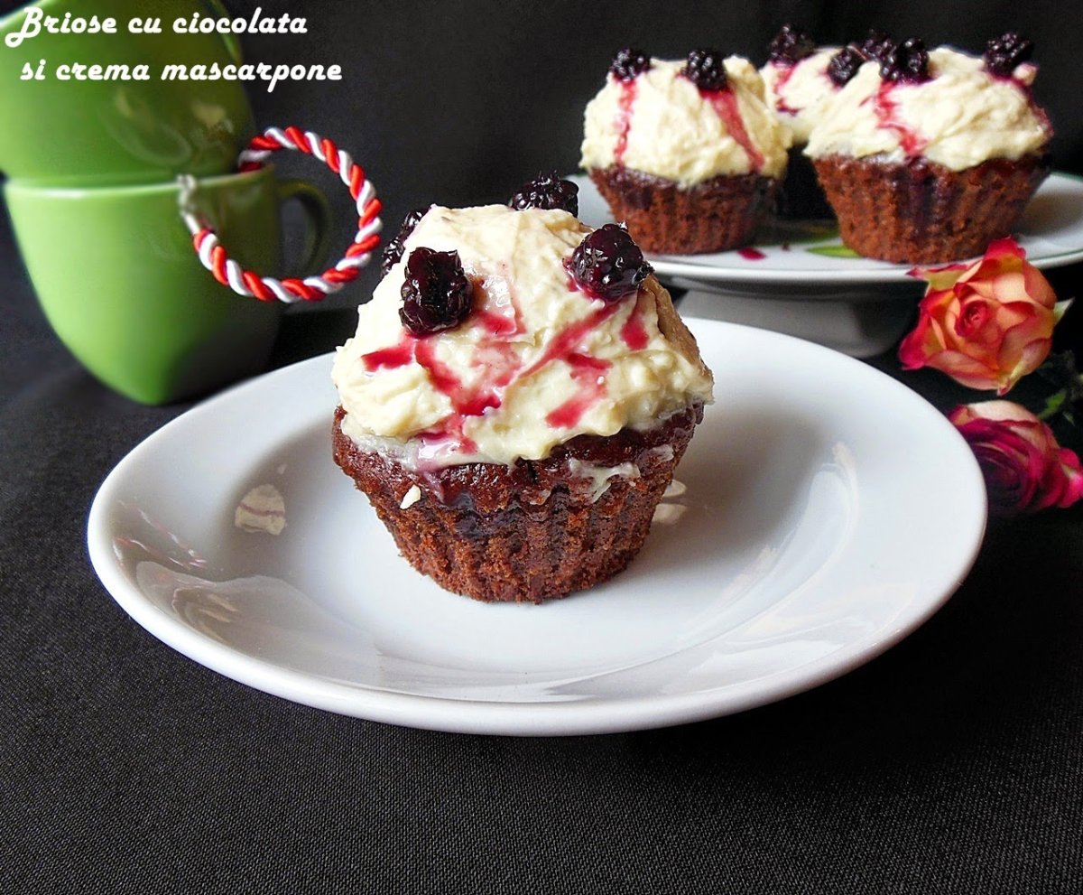 Cu o lingurita luam crema si punem pe fiecare briosa. Puneti crema o lingurita cu varf, pentru ca este suficienta si va ajunge pentru toate briosele.