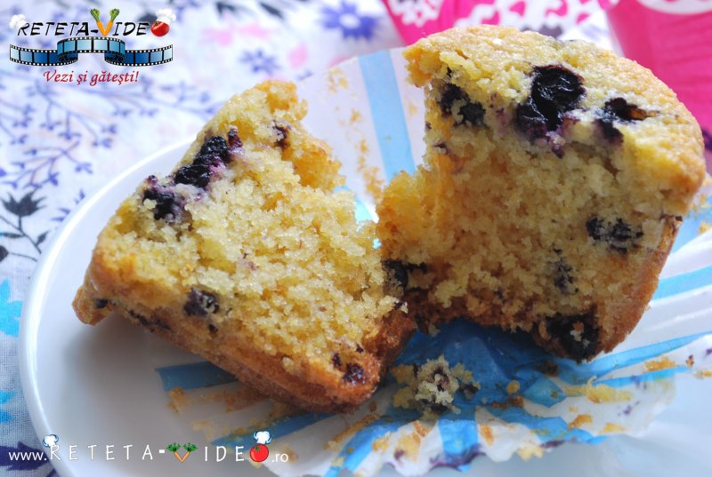 Presaram cateva afine deasupra fiecarei prajiturici si introducem tava in cuptorul incalzit la 200 de grade pentru 15-20 de minute.