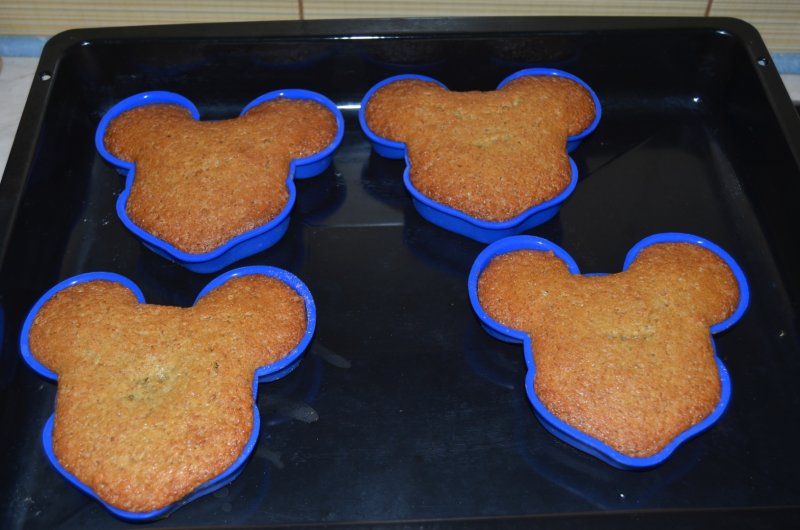 Omogenizam bine, cu mixerul, toate ingredientele, apoi cu lingura punem compozitia in formele de briose cam 3/4 din volumul acestora. Dam totul la cuptor, mai intai la foc iute pentru cateva minute, apoi scadem la foc mediu. Decoram dupa imaginatie, cu zahar pudra sau glazura de ciocolata.