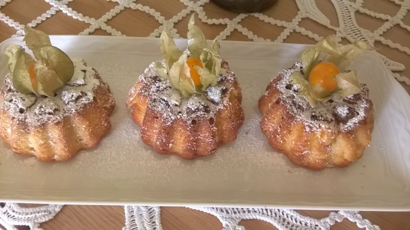 SE pune cu lingura din compozitie in formele de briose,se lasa la cuptor 30min,pana se rumenesc si trec testul cu scobitoarea,dupa ce s-au racit se scot din forme,se pun pe un platou,se pudreaza,se orneaza cu fructe apoi se servesc.