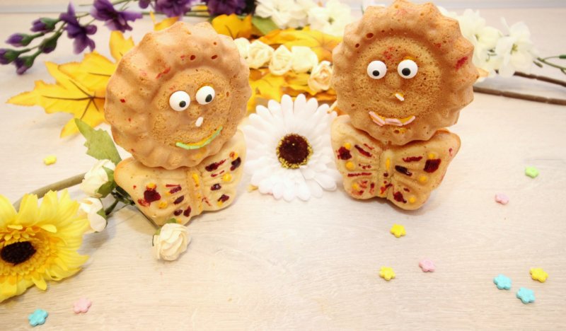 Adaugam o lingura de esenta de vanilie iar apoi incorpora faina. Punem cate 2 linguri si mixam dupa fiecare. Ungem cu un buretel imbibat in ulei formele pentru briose. Eu am folosit fluturi si forma de soare.