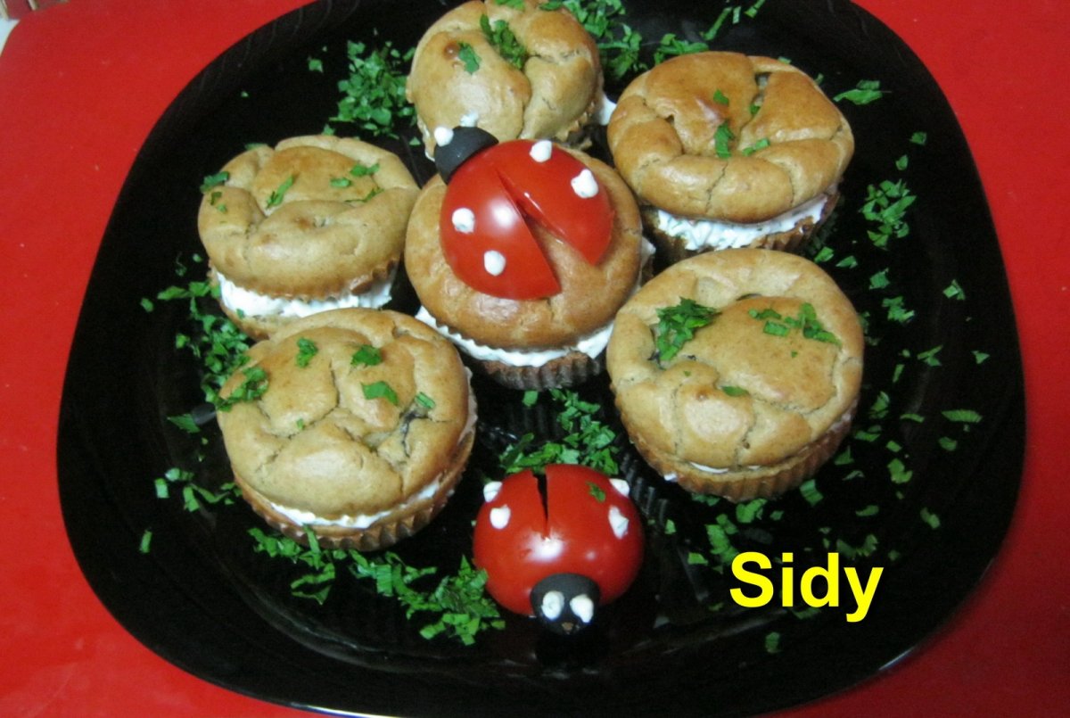 Dupa ce s-au racit briosele, le taiem in doua pe orizontal si le umplem cu branza, apoi peste punem cealalta jumatate de briosa .