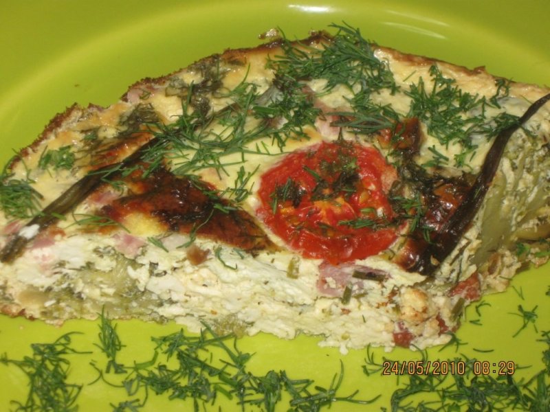Se unge un vas cu unt si se pun pe rand:un strat de brocolli, un strat de telemea rasa si un strat de kaizer taiat feliute.