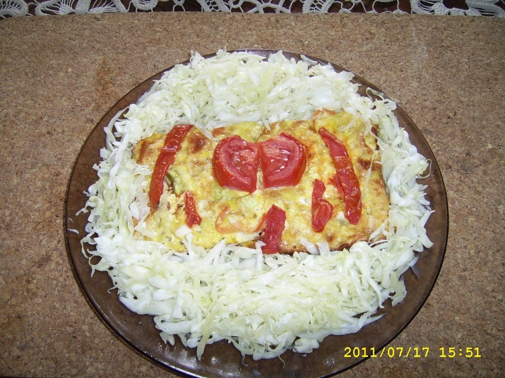 Se serveşte caldă cu salată.Eu am făcut salată de varză.
