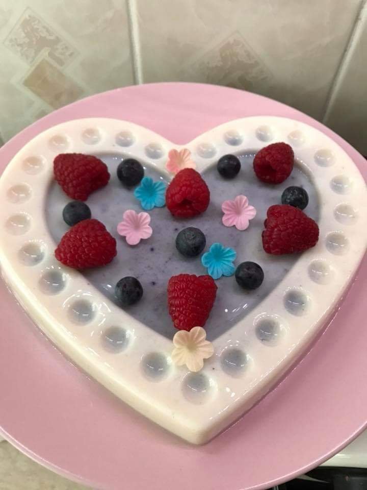 Punem apa cu agar agar, intr-o oala, pe foc. Amestecam bine si lasam sa fiarba, dupa ce incepe sa fiarba, punem si lingura de sirop de Agave si stingem focul, amestecam in continuare. Turnam si jumatate din cantitatea de lapte pe care l-am amestecat in prealabil cu vanilia si mesquite, amestecam in continuare. In cealalta jum am pus o lingurita de pudra de afine, pt culoare.