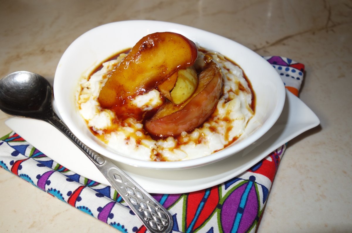 Se serveste orezul impreuna cu merele caramelizate.