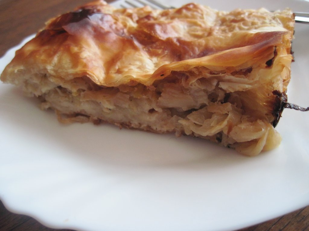 Inainte de a baga tava la cuptorul preincalzit la 190 grade, portionam placinta, apoi turnam apa minerala pana la nivelul placintei si dam la cuptor cam pentru jumate de ora.