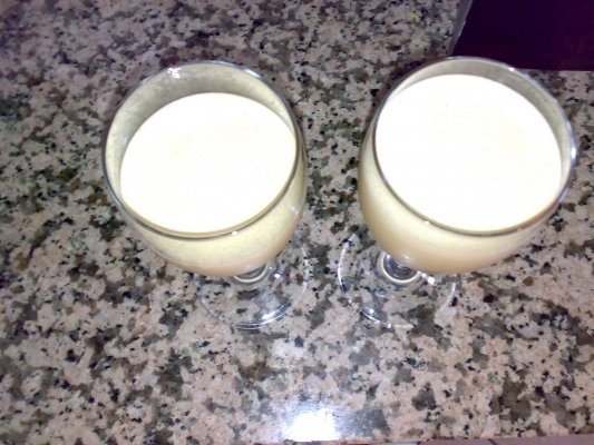 Se mixeaza totul pt 2-3 minute,se serveste rece in pahare mai inalte.