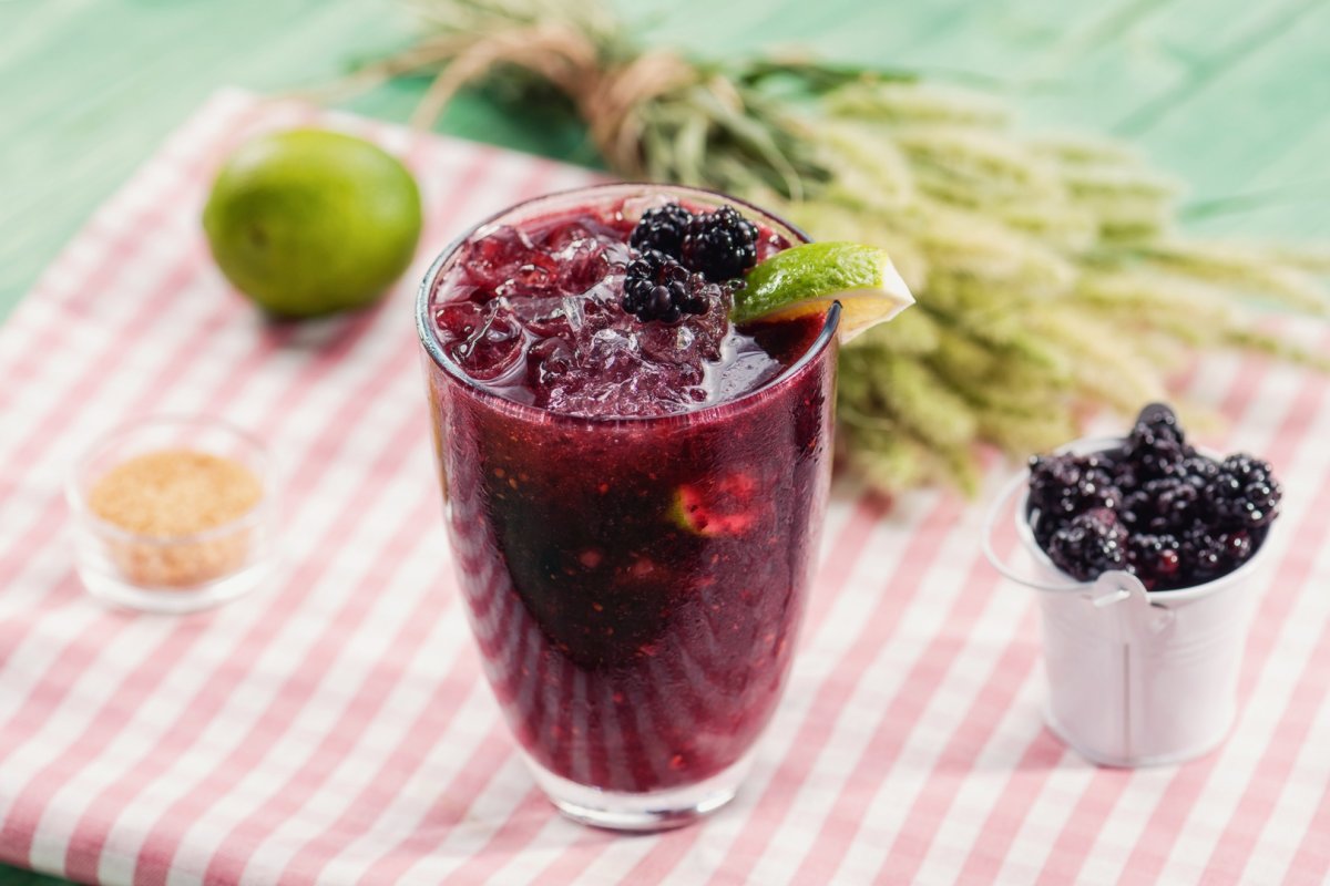 Puneti cubuletele de la jumatate de lime in pahar alaturi de mure si zahar si zdrobiti-le cu un pisalog (muddler)