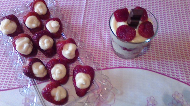 Amestecam capacelede la capsuni cu vanilie. Adaugam crema de branza si zaharul pudra si amestecam bine