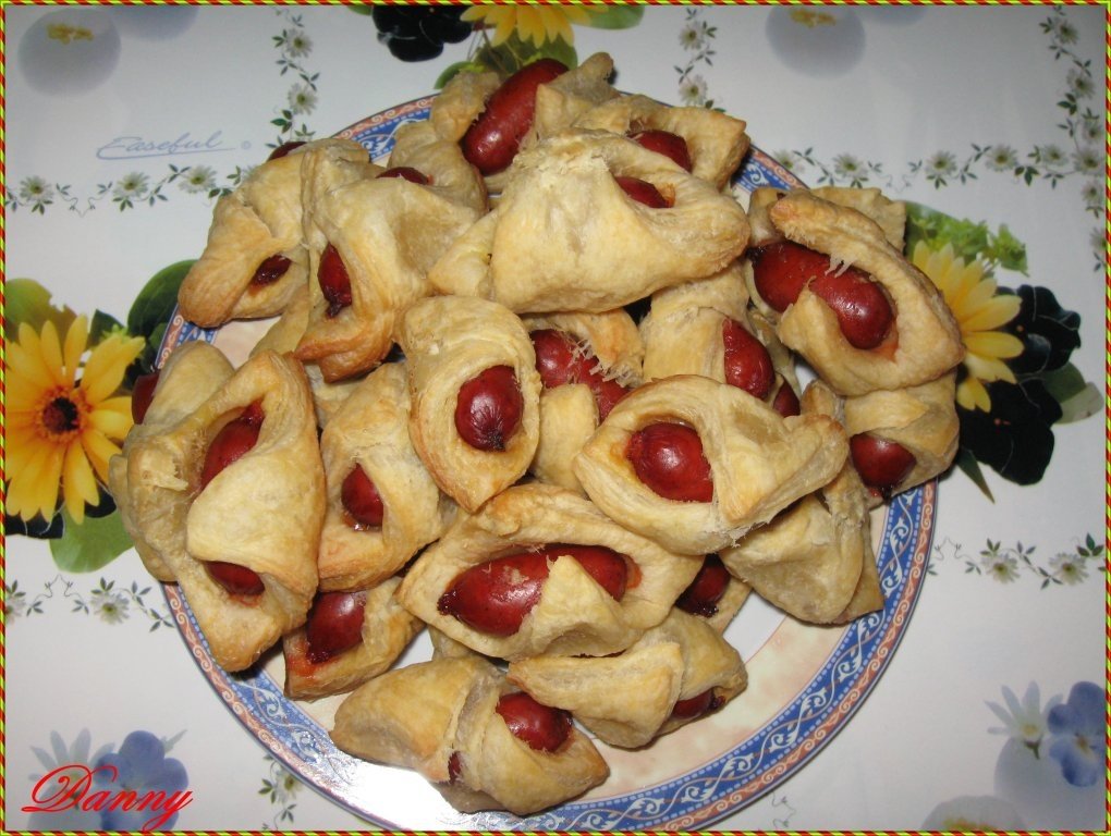 Aluatul se imparte in patrate egale, apoi se ia cate un patrat, se pune in mijloc un carnat si se ruleaza, ca la cornulete. Tava de unge cu putin ulei si apoi se adauga carnatii in aluat. Sunt gata cand aluatul este copt. Eu i-am tinut la 150 gr Celsius, pana s-a copt aluatul. Pofta buna!