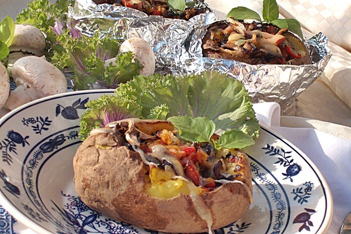 Cu aceasta umplutura se umple fiecare cartof apoi se aseaza pe gratarul aragazului si se dau la cuptorul incins pentru cca.20-30 min.Deasupra umpluturii se rade cascaval .Se servesc fierbinti.