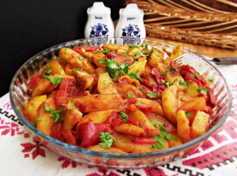 Mai adaugam si putin zahar, daca sosul este acrisor si adaugam totul peste cartofii de la cuptor, cand acestia sunt bine rumeniti.