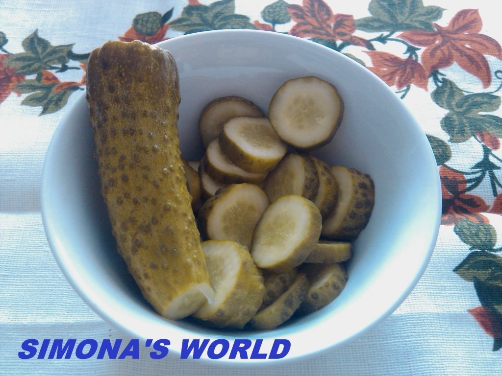 Se taie ceapa solzisori si impreuna cu usturoiul intreg se aseaza pe fundul borcanelor. Castraveciorii se aseaza si ei in borcane. Se pune in fiecare borcan cate 30 ml otet si se umple cu apa. Cand toate borcanele au fost umplute cu apa si otet, se rastoarna lichidul din borcane intr-un vas incapator si se adauga 1 lingurita de sare si 2 lingurite de zahar ptr fiecare borcan. Se amesteca bine pana se dizolva si se pune din nou in borcane. Se adauga boabe de mustar, se sigileaza cu capac si se fierb la bain-marie 5 min din momentul in care incepe sa fiarba. Se stinge focul si se lasa 20 min in apa in care au fiert. Se aseaza cu capacul in jos unde se lasa 12 ore.
