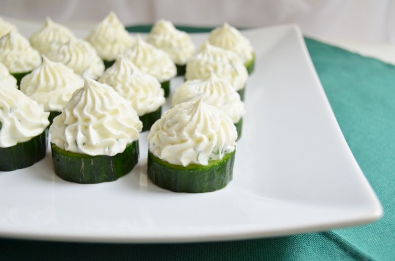 5. Pune crema de branza intr-un pos cu dui stea deschisa si orneaza fiecare felie de castravete.