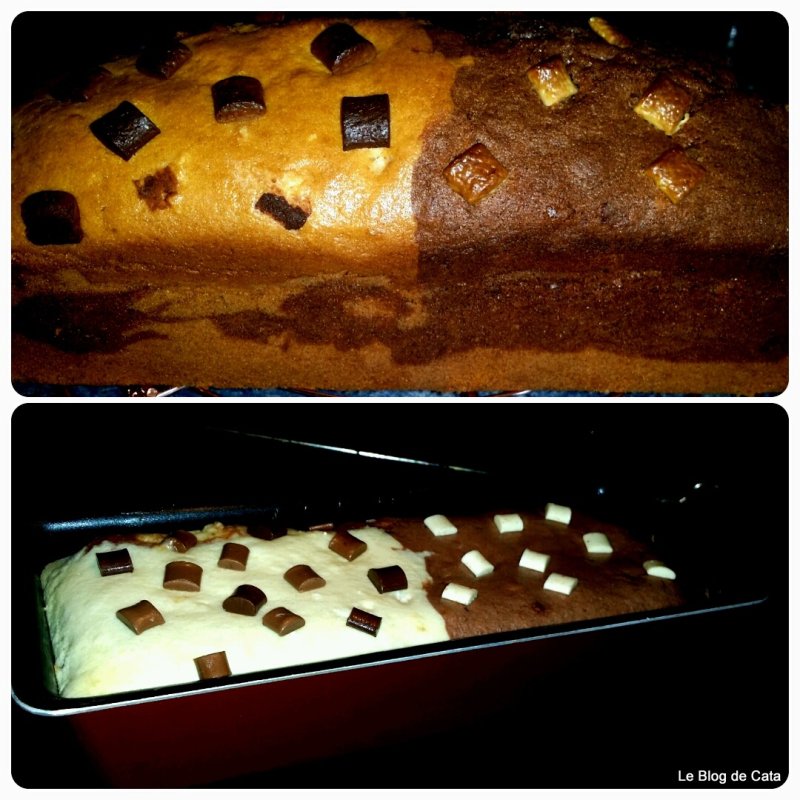 Intr-o tava de chec unsa se toarnă cele 2 preparate alternand culorile .