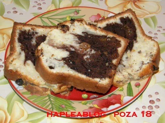 - jumătate din compoziţie se amestacă cu cacao, peste care adăugăm stafide.